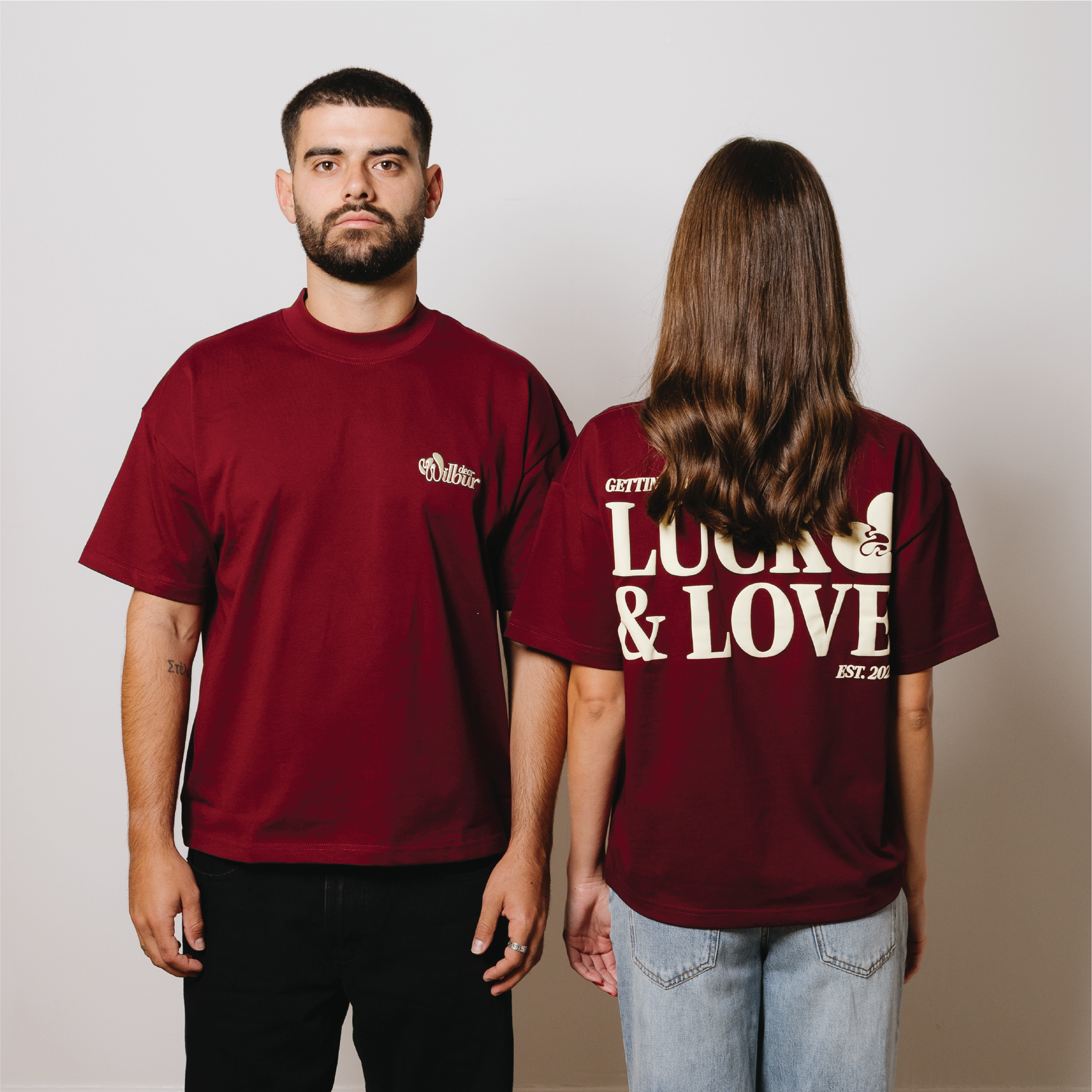 Luck & Love Premium T-Shirt, a perfect fusion of comfort and style. Crafted from top-shelf, substantial cotton, this tee features a fitted high collar for a touch of elegance, slightly cropped finish, boxy fit, all creating a modern twist to the classic design, ensuring a contemporary and flattering silhouette.